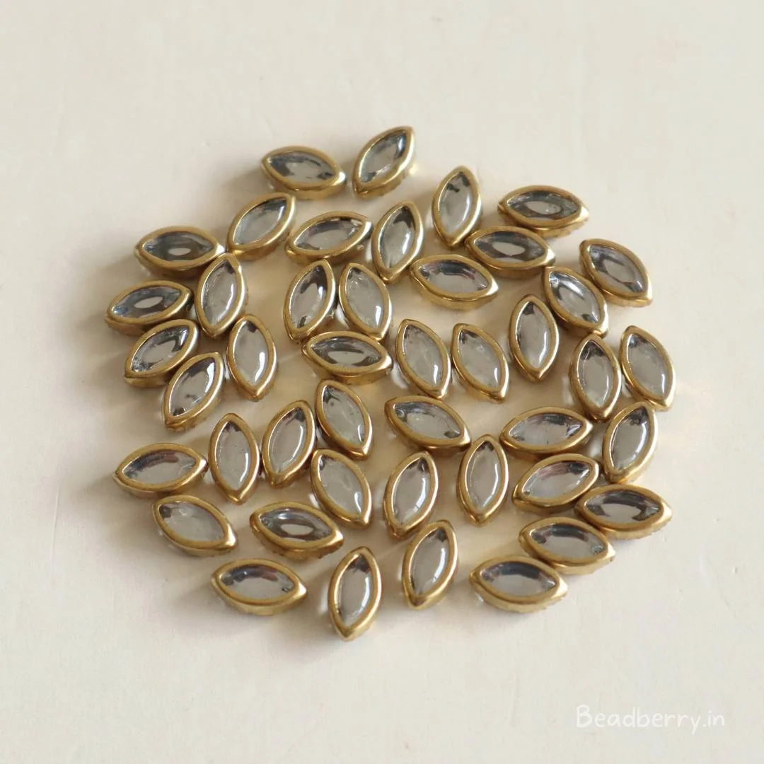 These high-quality oval decorative stones are crafted to add elegance and refinement to handmade women’s accessories. Featuring a smooth glossy surface, uniform oval shape, and a rich gold foil finish around the edges, these stones enhance the overall look of any design. Their polished appearance makes them perfect for creating earrings, necklaces, bangles, anklets, hair accessories, and decorative embellishments.